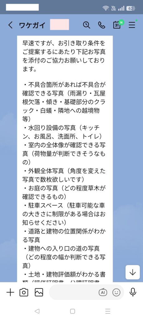 その後、詳しい情報(住所や築年数など)を電話でやり取り開始。